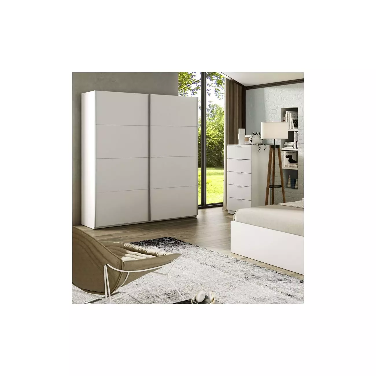 El armario Armin 150 2 puertas correderas es un armario doble de estilo contemporáneo con 2 puertas correderas, 2 zonas idénticas y una capacidad de almacenaje enorme.