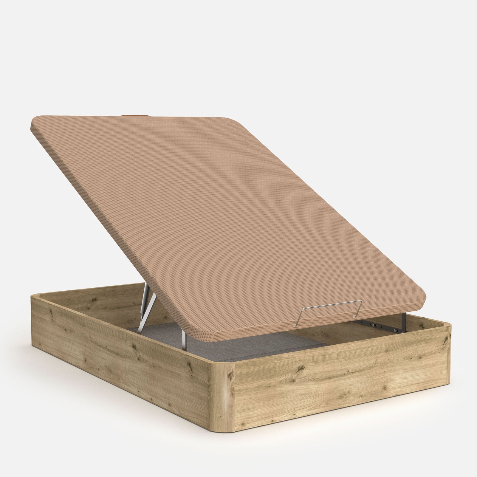 Su estructura de madera y el sistema de apertura hidráulica lo convierten en un canapé abatible fácil de usar y extremadamente duradero. Ideal para quienes buscan un canapé de gran capacidad.