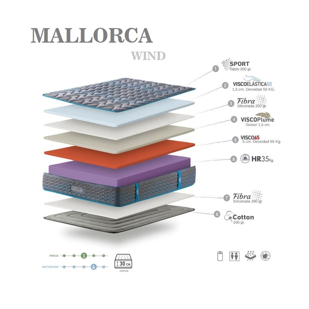 El Mallorca HR PRO ha sido creado para quienes buscan un descanso reparador con un extra de adaptabilidad. Con 30 cm de grosor, combina materiales de alta calidad que trabajan en conjunto para proporcionar una experiencia de sueño confortable y estable. Su núcleo de espuma HR de 35 kg de densidad ofrece un soporte resistente y duradero, mientras que las capas de viscoelástica multicapa de distintas densidades se adaptan de forma progresiva al cuerpo, aliviando la presión y favoreciendo una postura natural durante toda la noche. Gracias a su estructura equilibrada, el Mallorca HR PRO, promueve un descanso profundo que favorece la recuperación diaria y ayuda a mantener el bienestar físico y mental. El Mallorca HR PRO es de los colchones HR el mas alto en su gama. Un colchon PRO donde lo pongan.