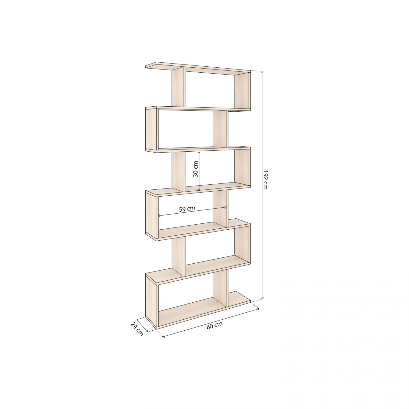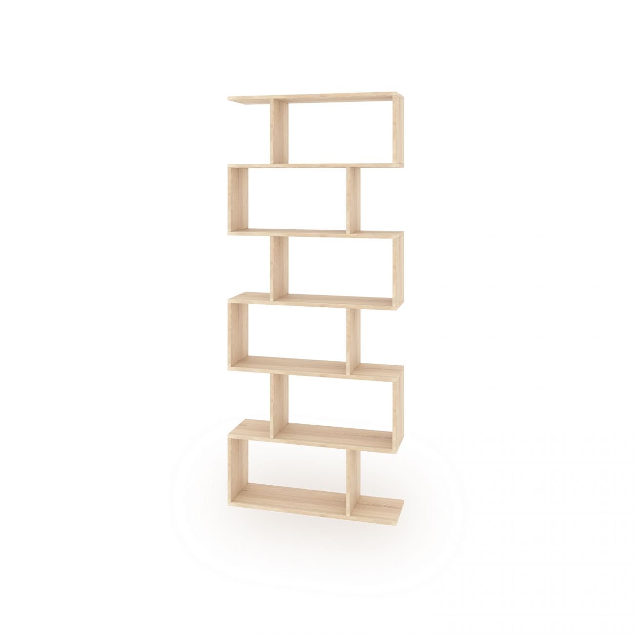 Cada uno de sus compartimentos ofrece amplitud suficiente para albergar libros, objetos decorativos, plantas pequeñas o piezas de arte, lo que la convierte en una opción ideal tanto para salones como para despachos, dormitorios juveniles o rincones creativos. Su formato escalonado alterna los huecos de forma que cada estante parece flotar, aportando una sensación de ligereza visual.