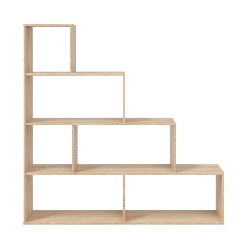 Con una estética moderna y estructura singular, la estantería Escala destaca por su diseño en forma de escalera, que rompe con la simetría tradicional para ofrecer una solución decorativa tan práctica como visualmente atractiva.