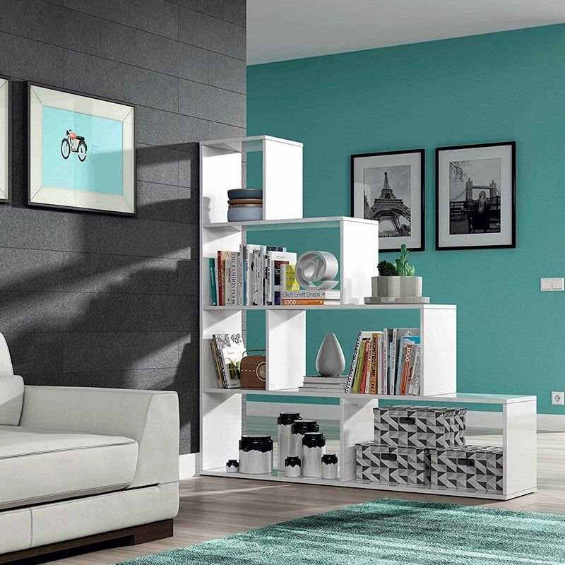 Esta disposición escalonada no solo le otorga personalidad al mueble, sino que también permite jugar con la altura de los objetos, creando composiciones dinámicas y personalizadas.
