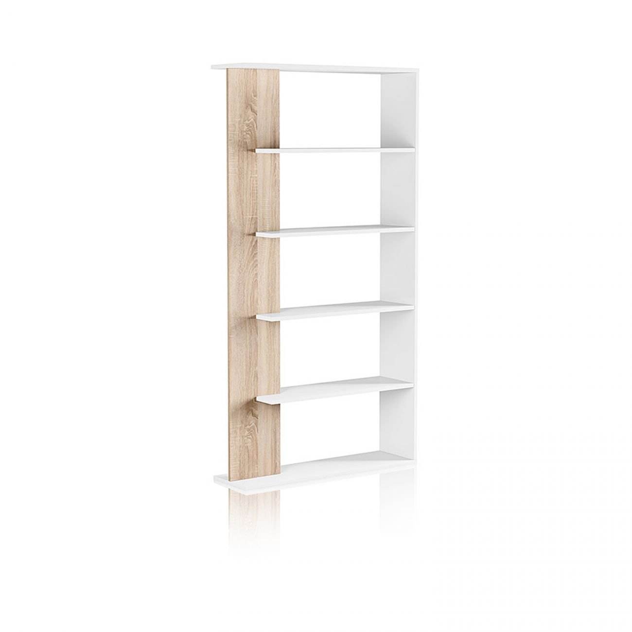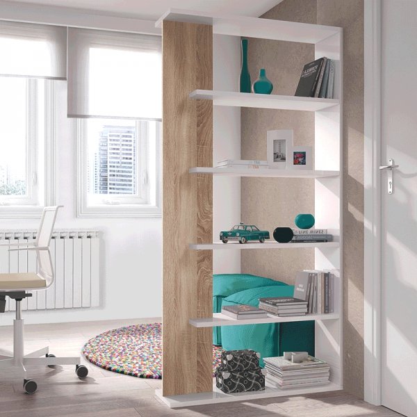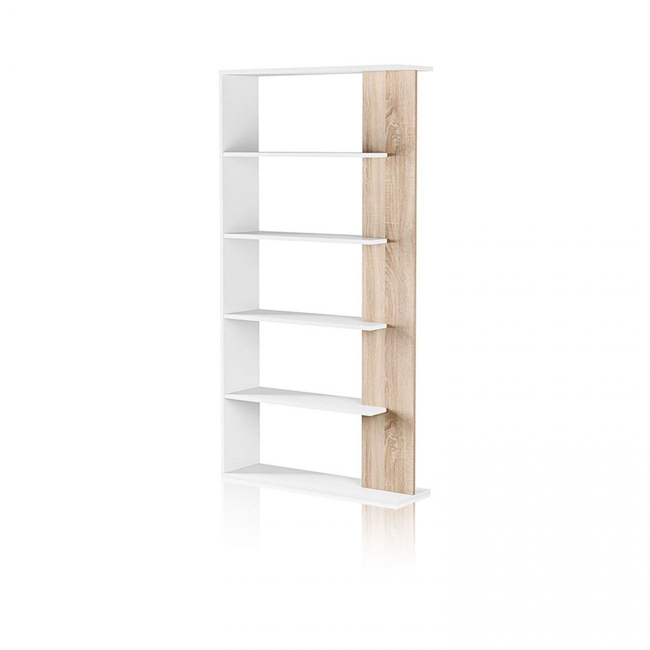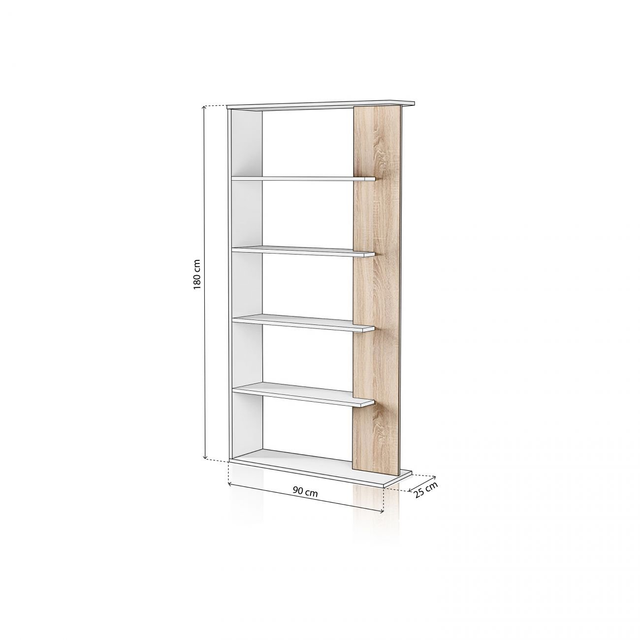 Uno de sus rasgos más distintivos es su juego visual de líneas limpias y asimetría lateral, que aporta un toque contemporáneo y original. Esta disposición no solo mejora su funcionalidad, sino que también convierte a la estantería en un punto focal dentro de cualquier salón, despacho o dormitorio, ideal para quienes buscan soluciones de organización con estilo.