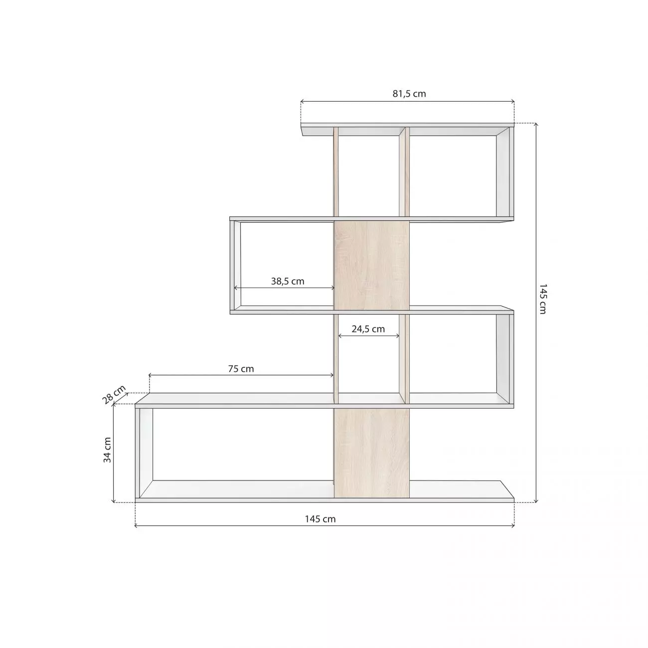 Su estructura abierta y escalonada ofrece una composición dinámica, ideal para integrar en ambientes modernos, ya sea en el salón, el despacho o incluso en el recibidor.