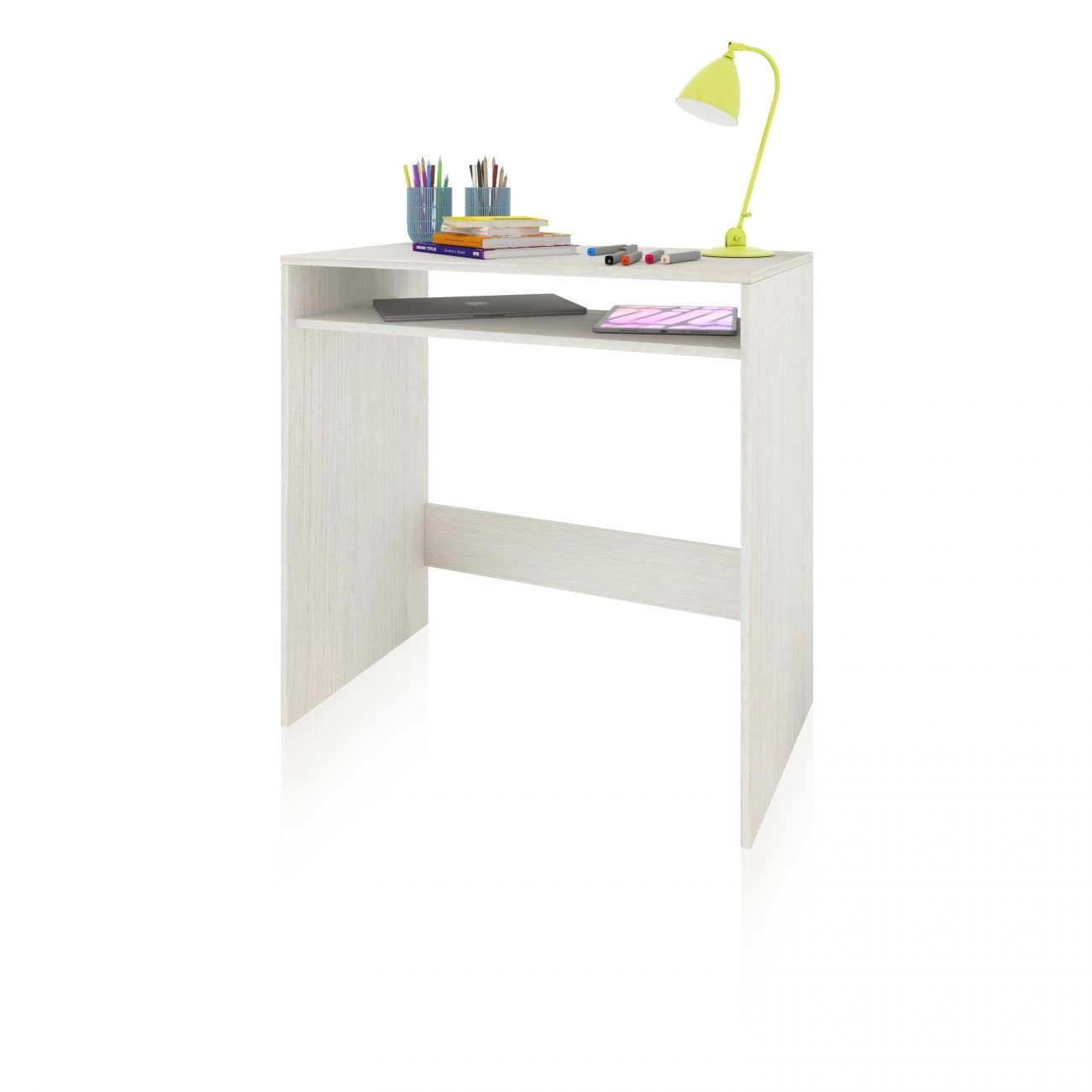 El tablero superior ofrece una superficie de trabajo amplia y despejada, perfecta para colocar un portátil, libros o material de oficina.