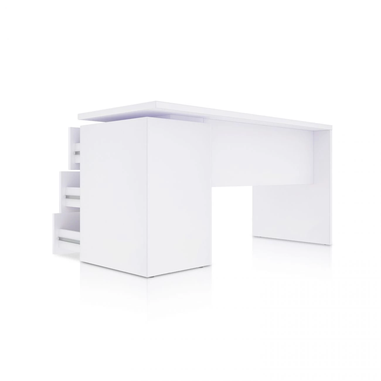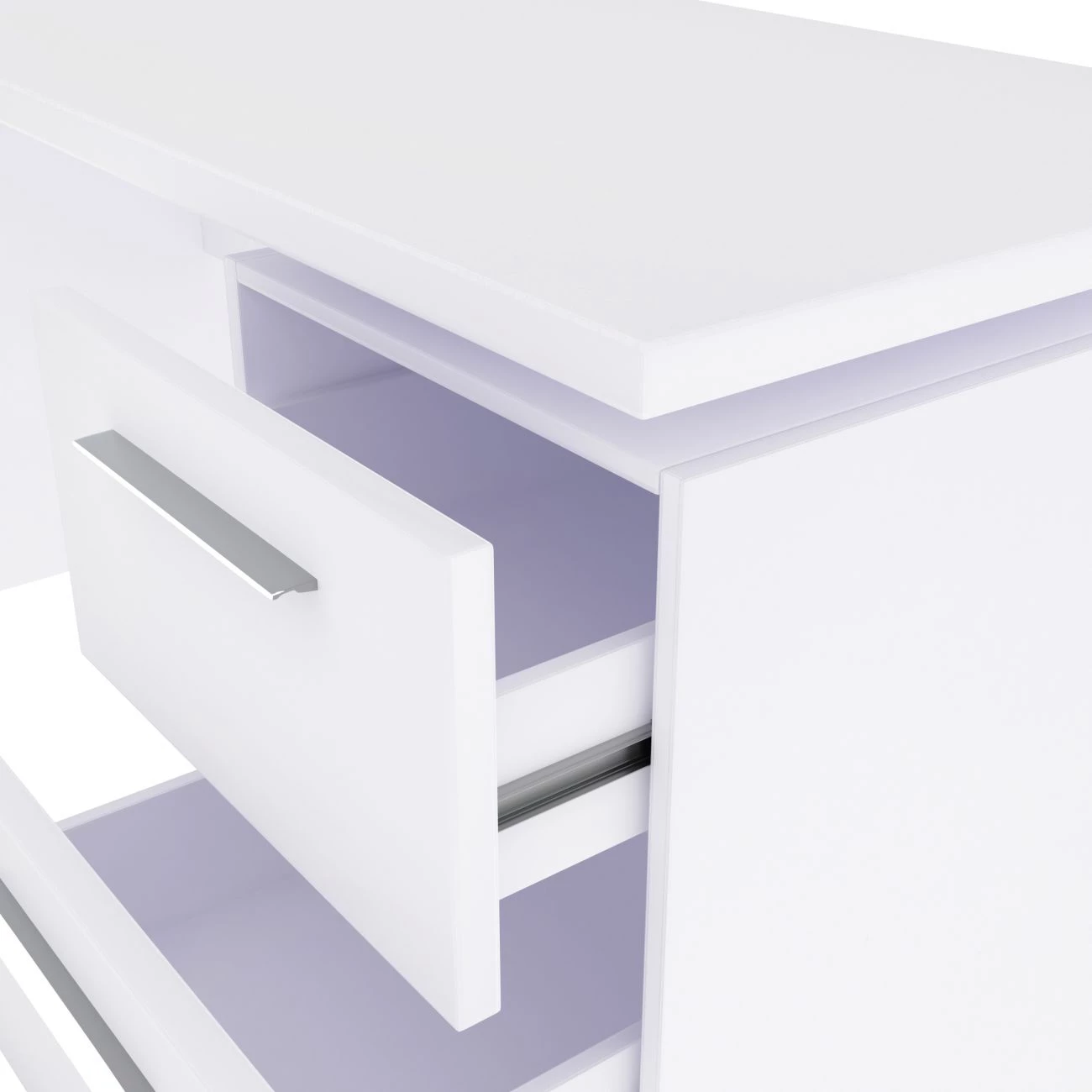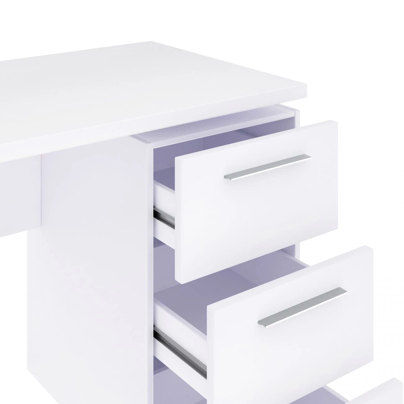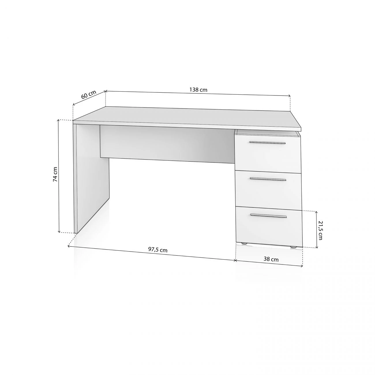 Uno de los principales atractivos visuales de esta mesa es la incorporación de un módulo lateral con tres cajones espaciosos. Estos cajones, equipados con tiradores metálicos alargados de líneas modernas, ofrecen un acceso cómodo al almacenamiento y ayudan a mantener el orden en el espacio de trabajo.