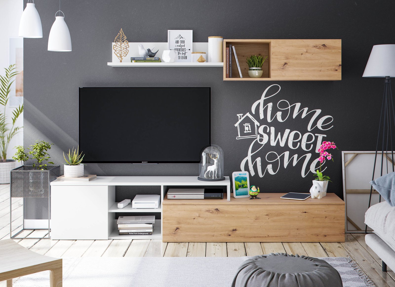 El mueble de salón NEXNORD es un mueble pensado para decorar el sitio donde tengas la televisión, compuesto por 2 módulos distintos: uno superior y uno inferior.